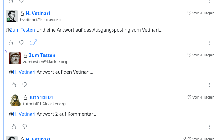 Ein weiterer Klick auf die Sprechblase ersetzt diese farbigen Linien durch Einrückungen, stellt verschachtelte Kommentare also in einer Baumansicht dar.