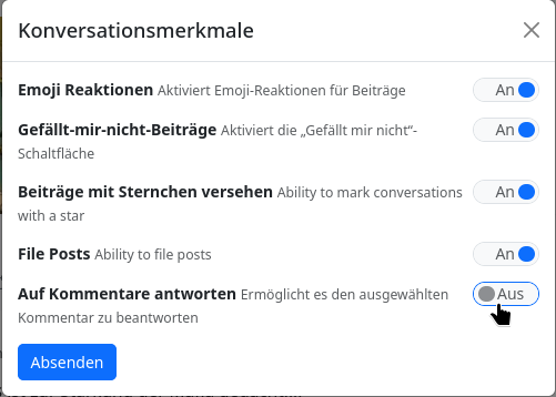 Hat man das getan, kann nur noch der Ausgangs-Beitrag kommentiert werden. Nun erscheint auch wieder am Ende des Threads das altbekannte Eingabefeld für Kommentare.
