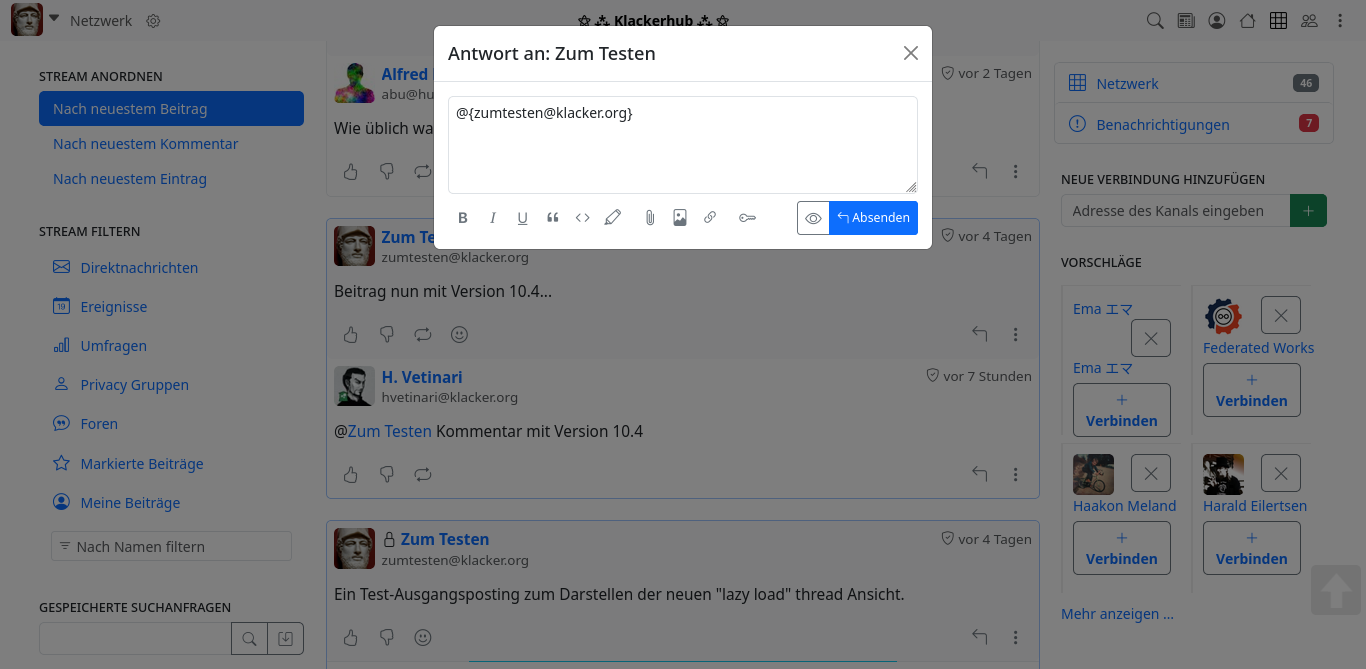 Es wird nun der Ausgangsbeitrag und die letzten drei Kommentare geladen und angezeigt. Das mach den Stream übersichtlicher und verringert die Darstellungszeit.