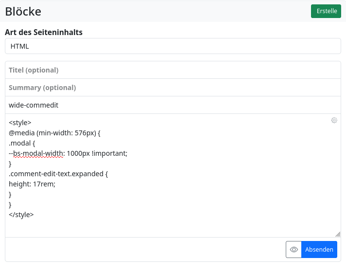 Nun wird der Kommentar-Editor deutlich breiter dargestellt.