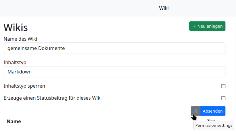 Dafür starten wir die App “Wiki” und klicken dort auf den Button “+ Neu anlegen”.