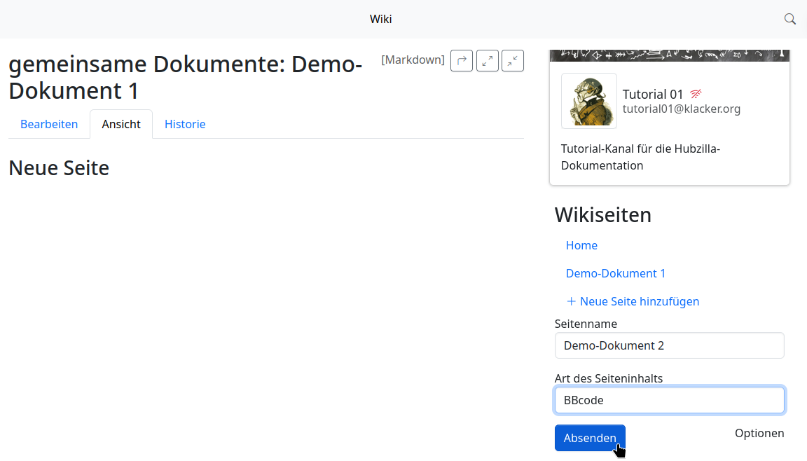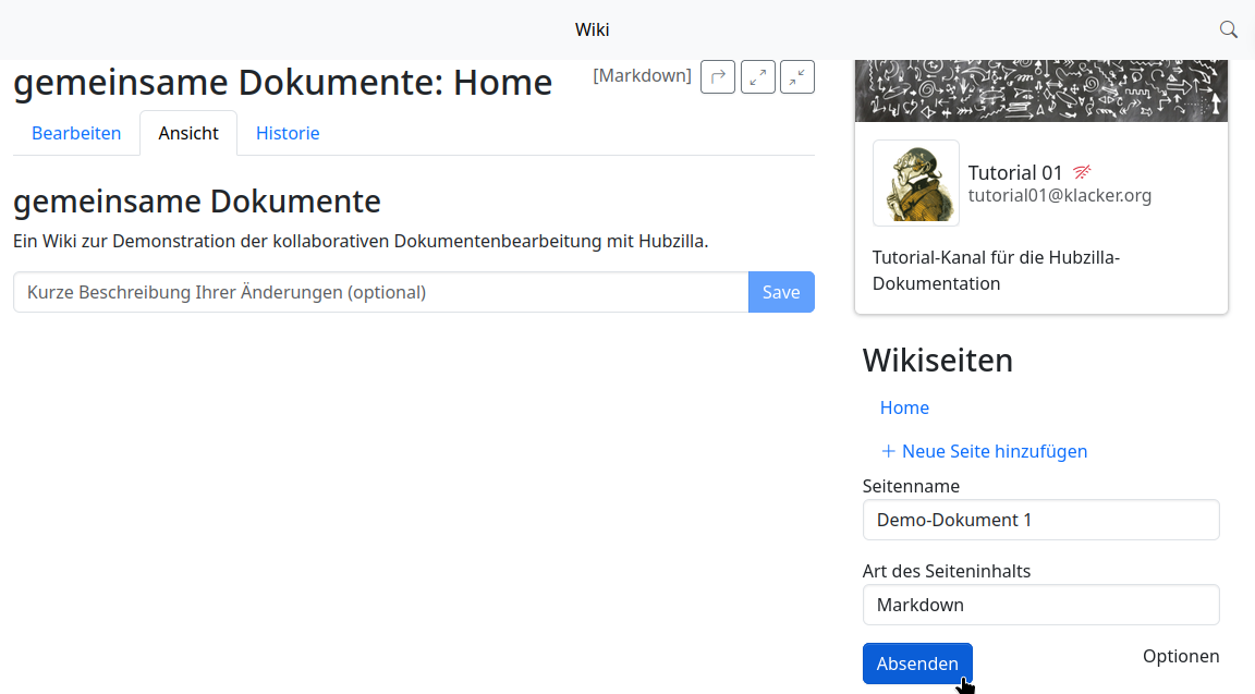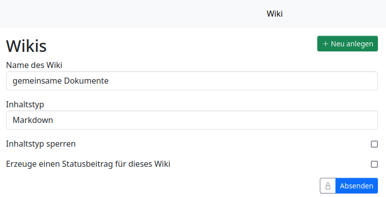 Dann noch auf den Button “Absenden” klicken… und das Dokumenten-Wiki zur gemeinsamen Bearbeitung ist angelegt.
