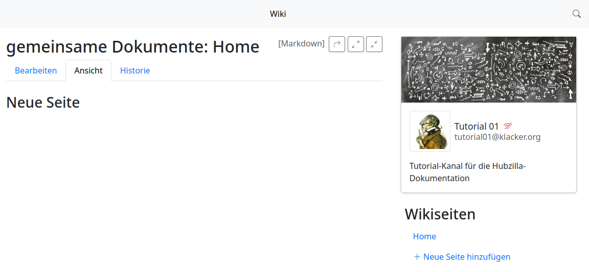 Da die Zusammenarbeit an Dokumenten mit der App “Wiki” erfolgen soll, muss diese App natürlich im Kanal installiert sein. Wie das Installieren von Apps funktioniert, ist hier beschrieben: Hubzilla-Hilfe - Apps und Hubzilla KnowledgeDB - Apps.