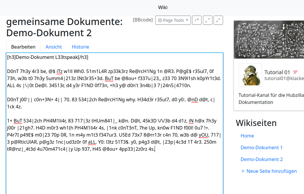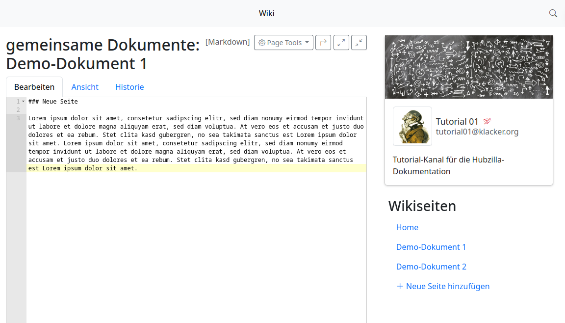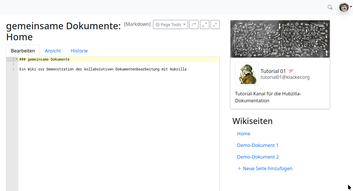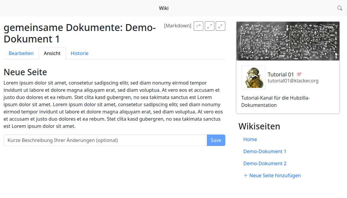 Darin wies ich darauf hin, dass man die Wiki-App von Hubzilla sehr gut für das kollaborative Arbeiten an Texten nutzen kann, ohne allerdings genauer darauf einzugehen, wie man das denn tatsächlich realisiert, worauf man achten muss und wie es generell funktioniert.